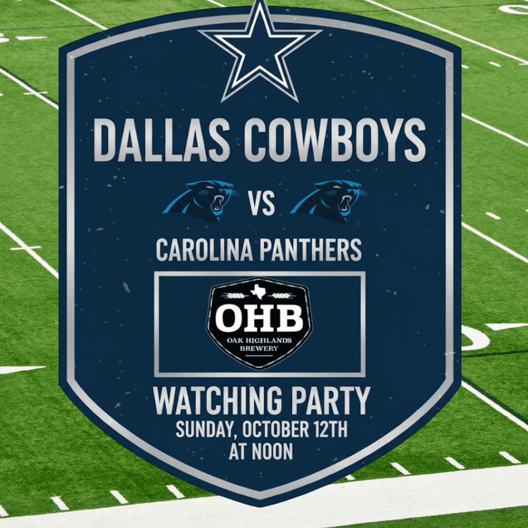 Are the Cowboys turning it around? Sitting at 2-2-1, they’re looking to build some momentum this week against the Carolina Panthers, and we’ve got the perfect spot to watch it all go down! Join us at the brewery this Sunday, October 12th, for our official Cowboys vs. Panthers Watching Party! We’re opening the doors right at Noon for kickoff and will have the game on every screen. Come cheer on the ‘Boys while enjoying: 🍺 Plenty of cold OHB beer on tap. |