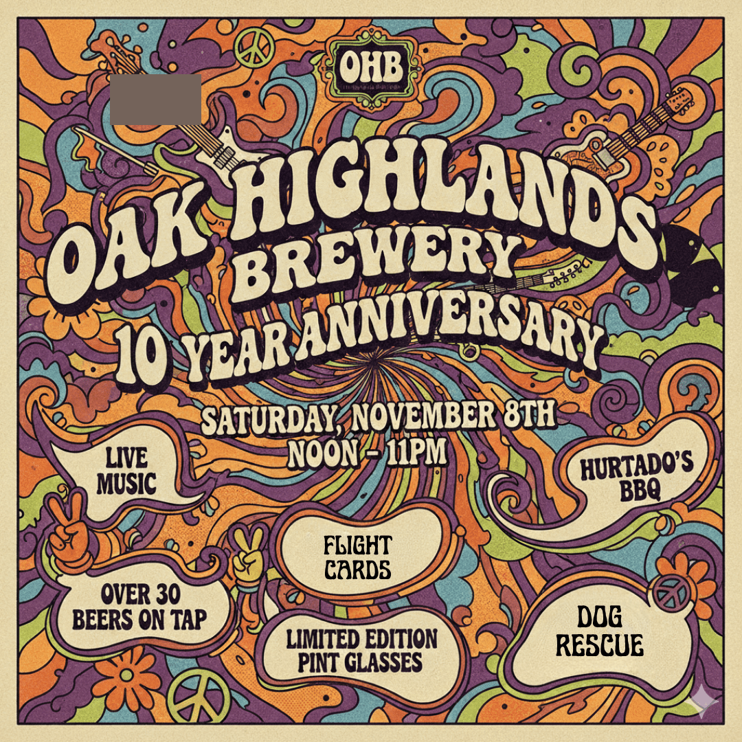 A decade of beer! 🍻 Ten years in the brewing world is like 100 in human years, and it’s time to celebrate. Join us on Saturday, November 8th, for our 10-Year Anniversary bash! This one is extra special as we celebrate the first year in our new Richardson home. We’re going all out with a huge lineup of OHB beers, live music, games, and mouth-watering food from Hurtado Barbecue. The party runs from Noon to 11 PM. Come raise a glass with us and celebrate ten amazing years. We can’t wait to see you! |